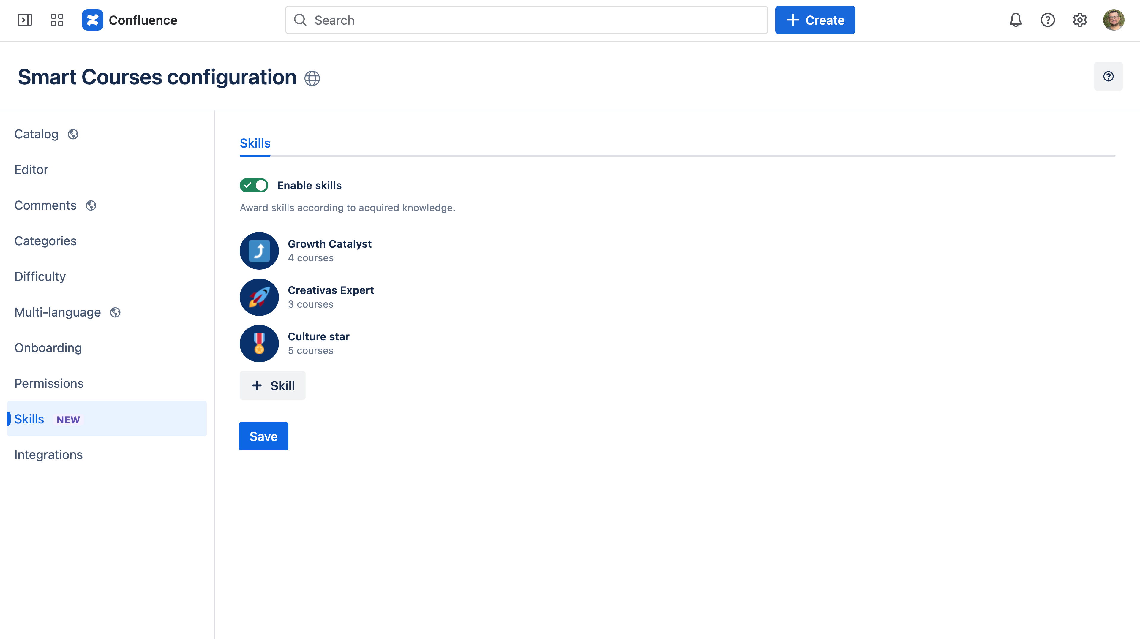 - Custom confluence menu title [On-premise only]: Customize the main courses catalog menu text, in the Confluence header