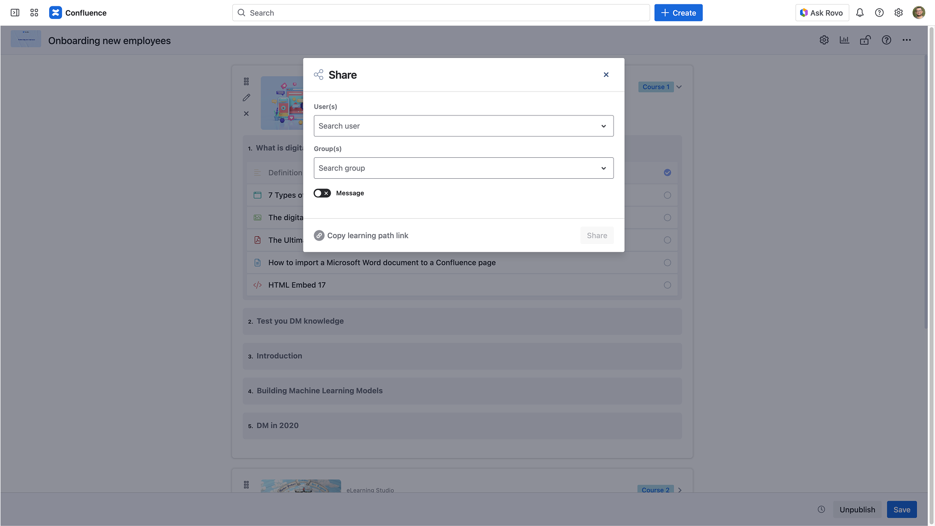 Select a user or a group of users to invite them to attend the learning path.