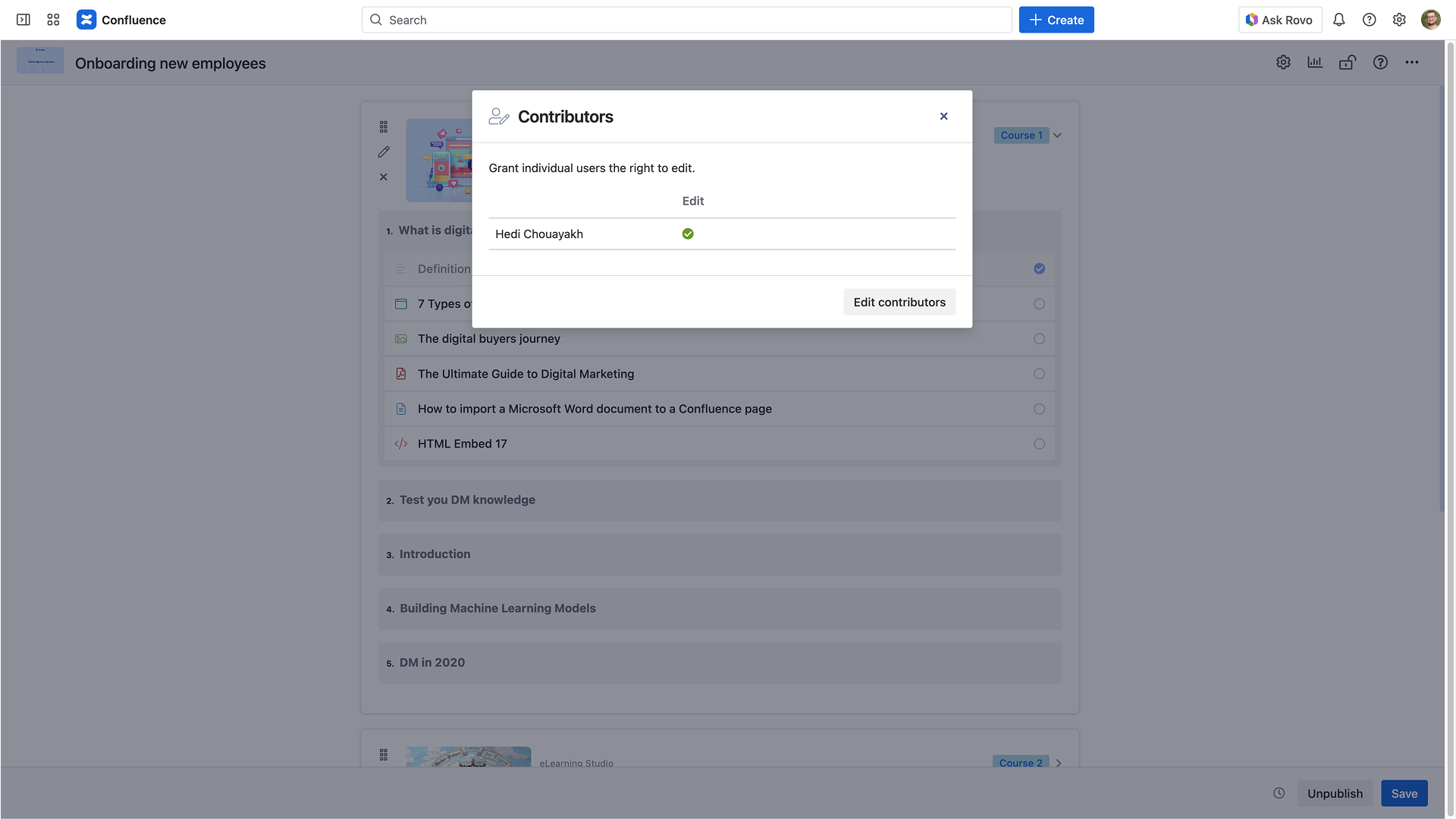 An admin can select users to grant them the right to edit the learning path (contributors).