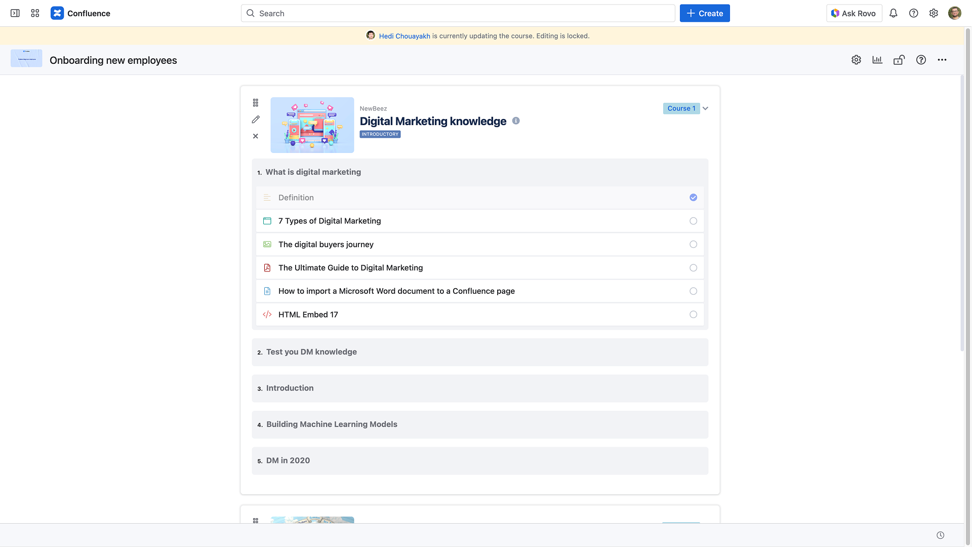 When one contributor is editing the learning path, all other contributors cannot edit or configure it simultaneously. A yellow bar on the top will appear, informing you that the learning path is currently locked for editing. This is a precaution to prevent conflicts and ensure changes are managed efficiently. Once the current contributor finishes editing, other contributors will need to refresh to start editing.