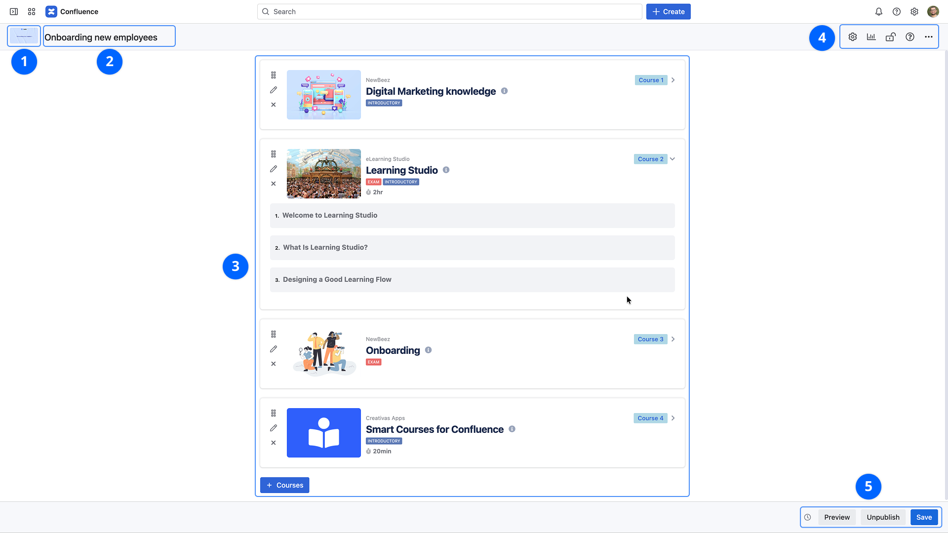 Publish / Unpublish: Allows controlling the learning path's visibility in the Smart Courses catalog; a learning path is only visible to learners if it is published