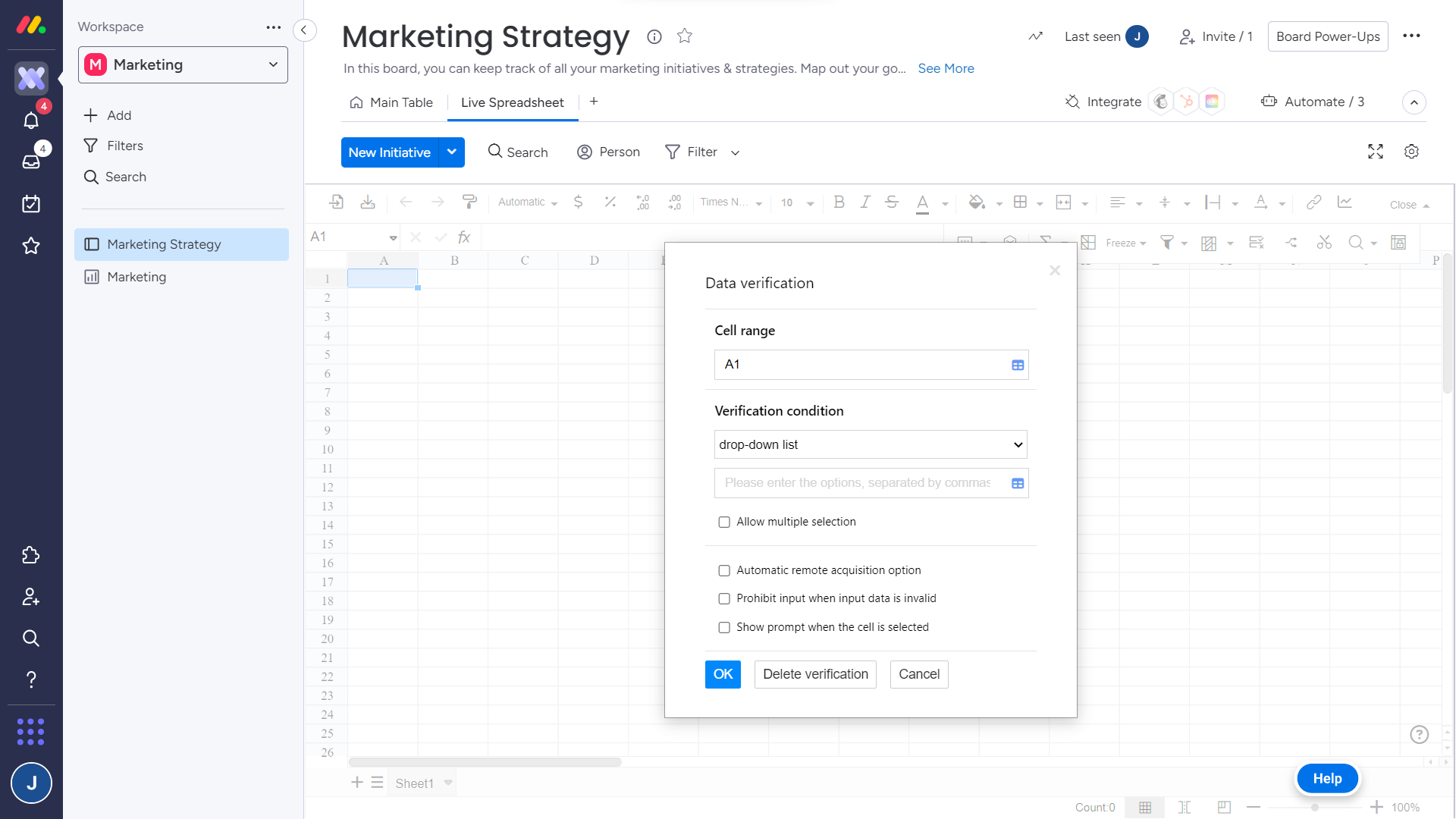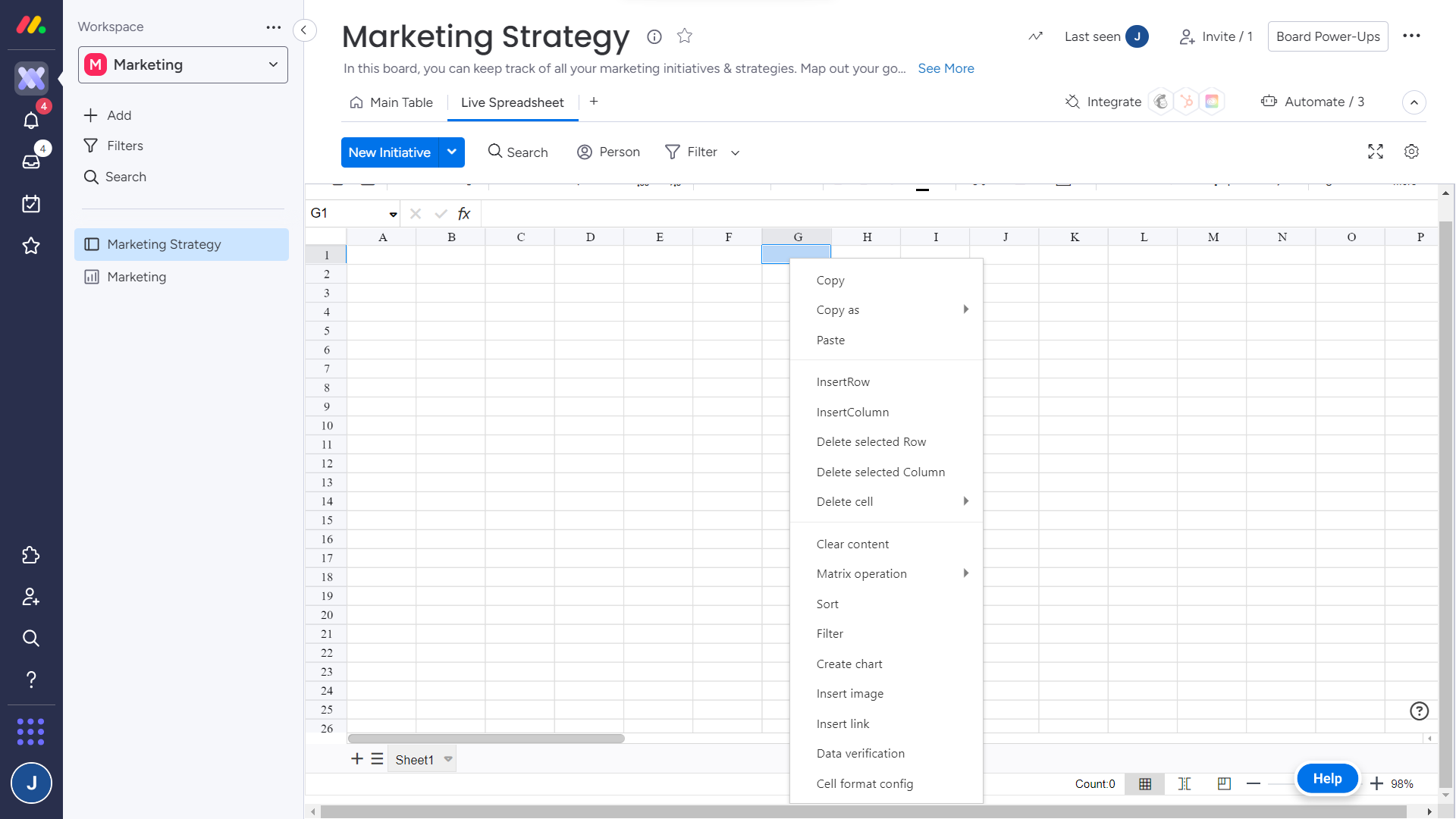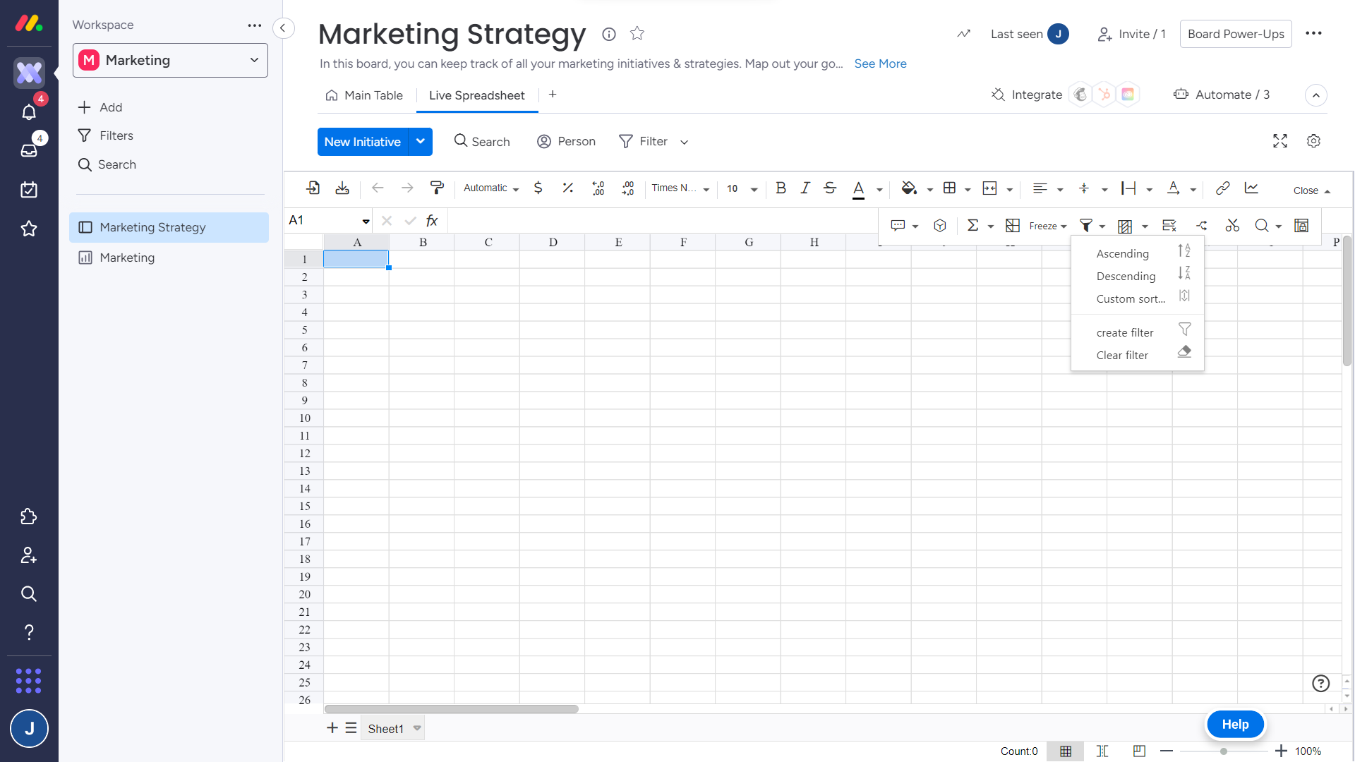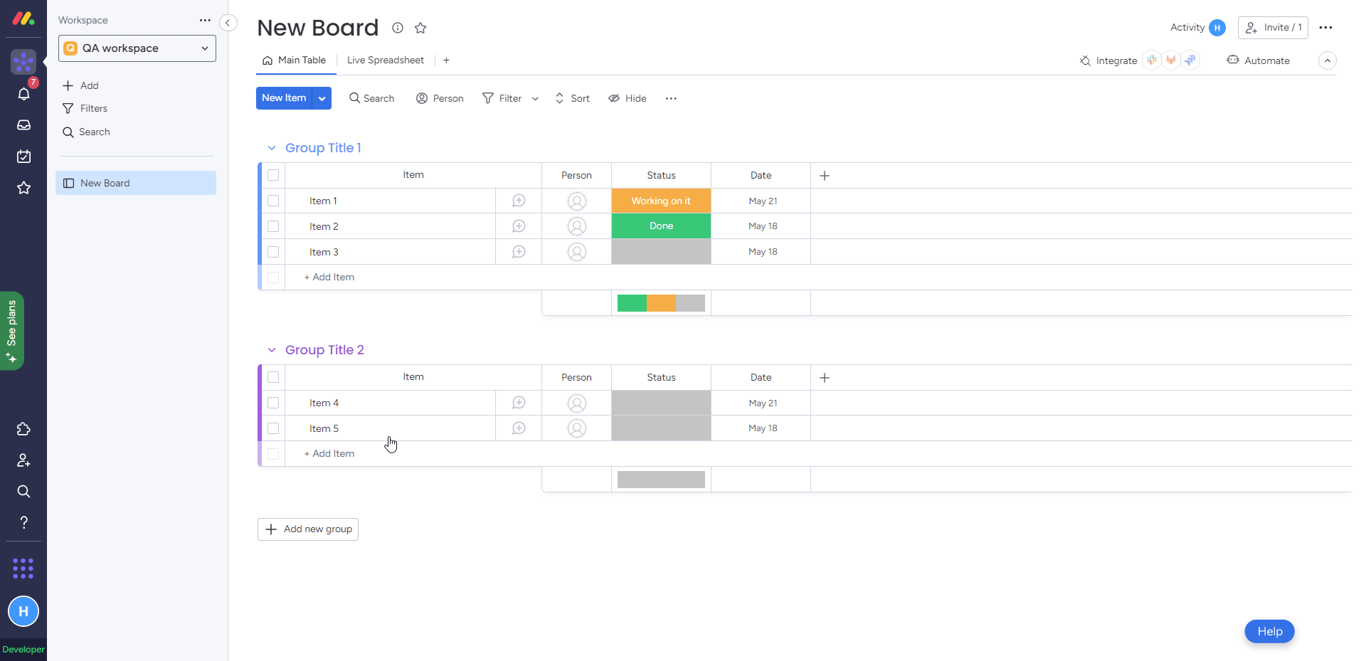 Easily add an XLSX file to Live Spreadsheet or export a spreadsheet made in monday.com to an Excel file.